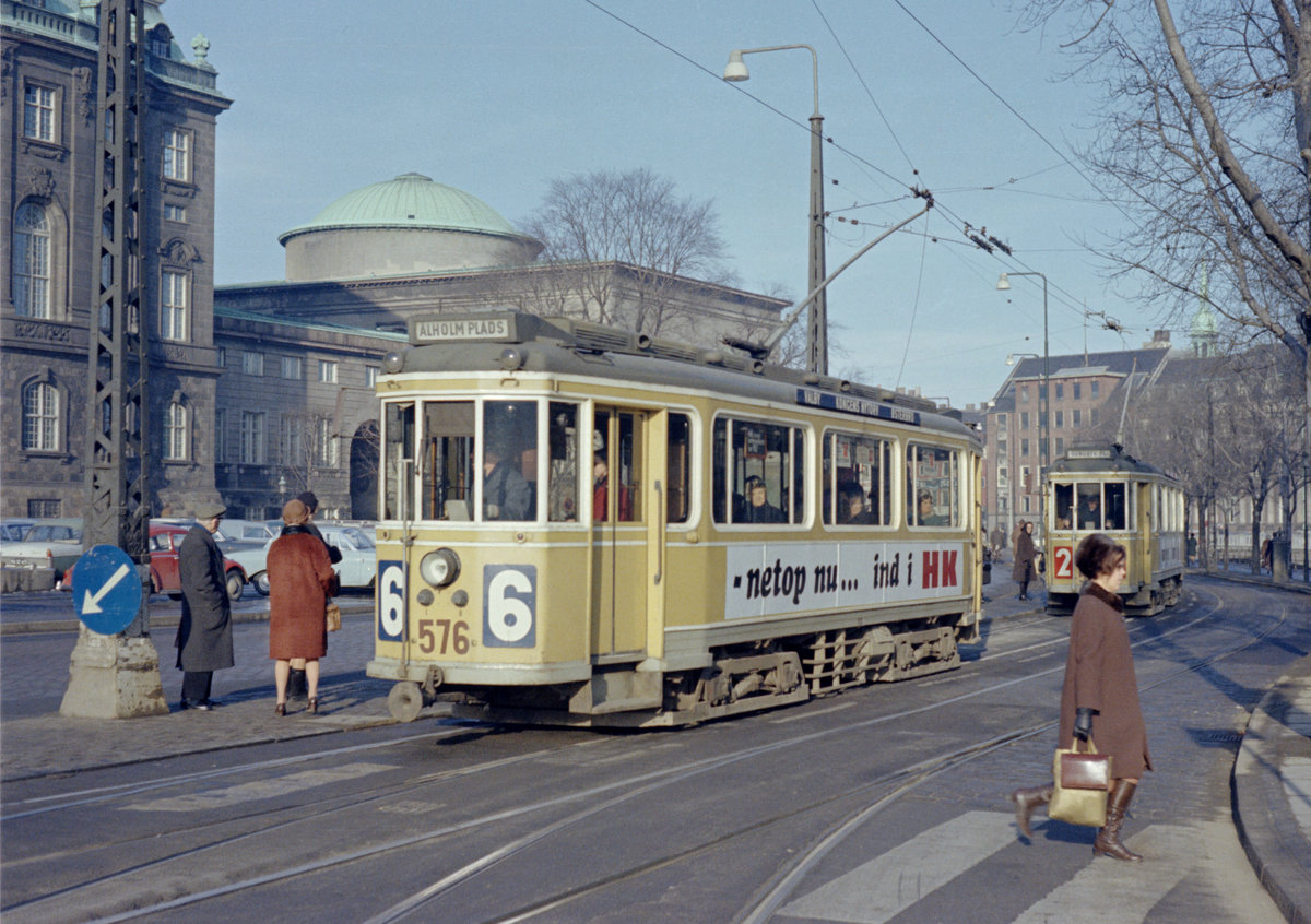 København / Kopenhagen Københavns Sporveje SL 2 (Tw 567 + Bw 15xx) København V, H.C. Andersens Boulevard / Rådhuspladsen / Vesterbrogade am 6. März 1969. - Einige Bilder aus meinen Jugendjahren zeigen unverwünschte Nebenmotive wie mein Fahrrad oder meine Aktentasche, damals wichtige und unentbehrliche Begleiter auf meinen Fotofahrten in Kopenhagen. - Scan eines Farbnegativs. Film: Kodak Kodacolor X.