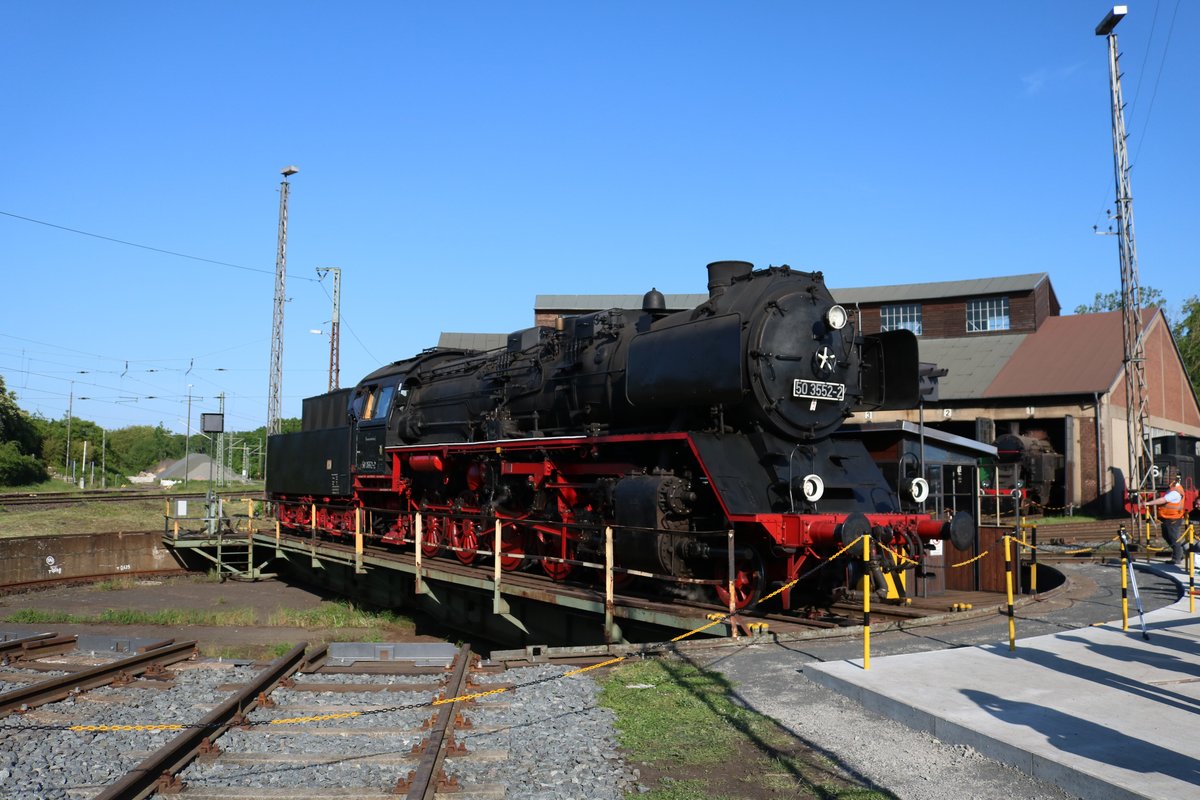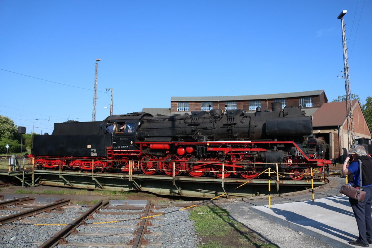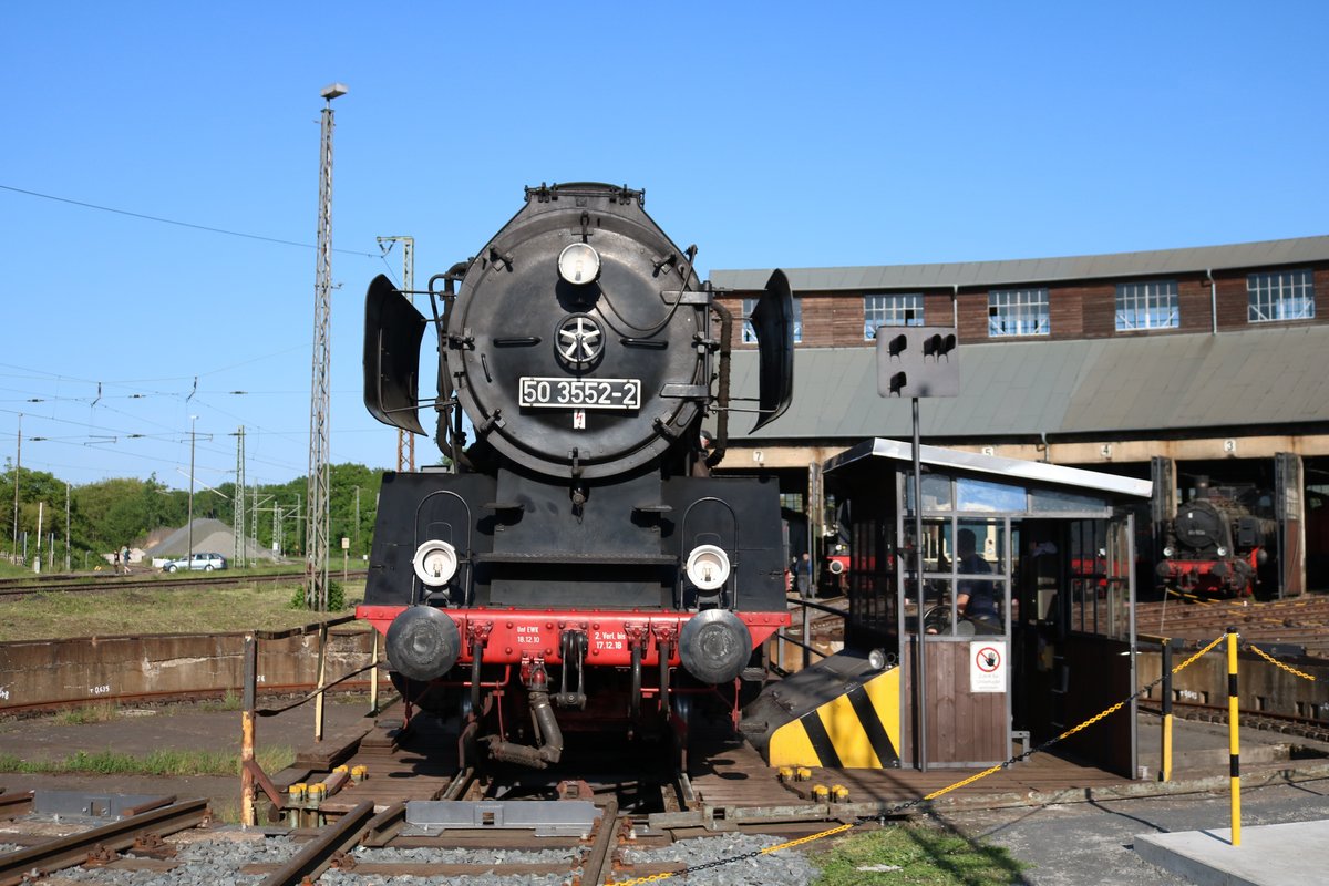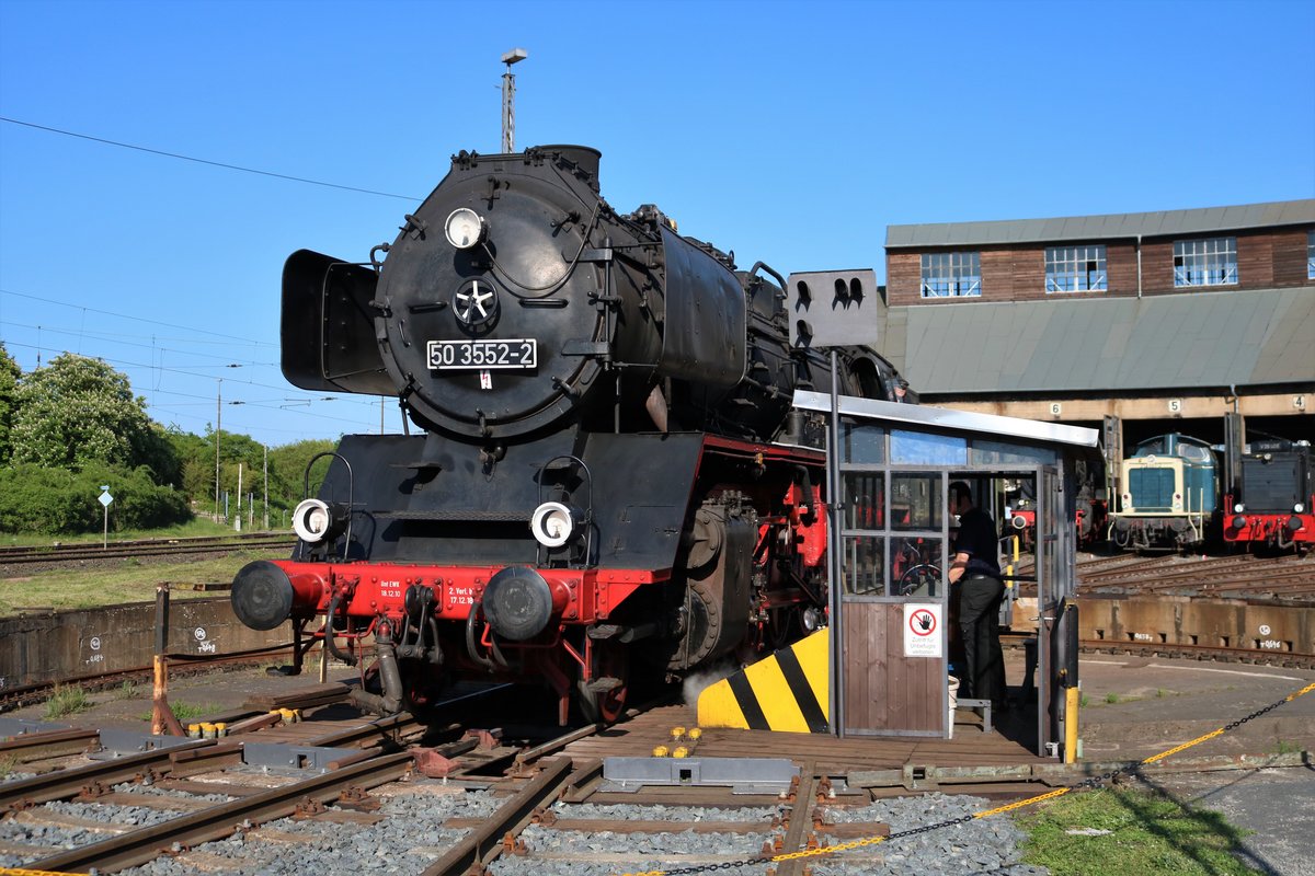 Museumseisenbahn Hanau 50 3552-2 auf der Drehscheibe am 05.05.18 beim Lokschuppenfest