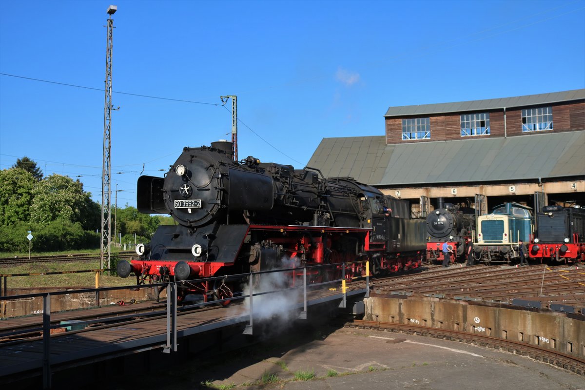 Museumseisenbahn Hanau 50 3552-2 auf der Drehscheibe am 05.05.18 beim Lokschuppenfest