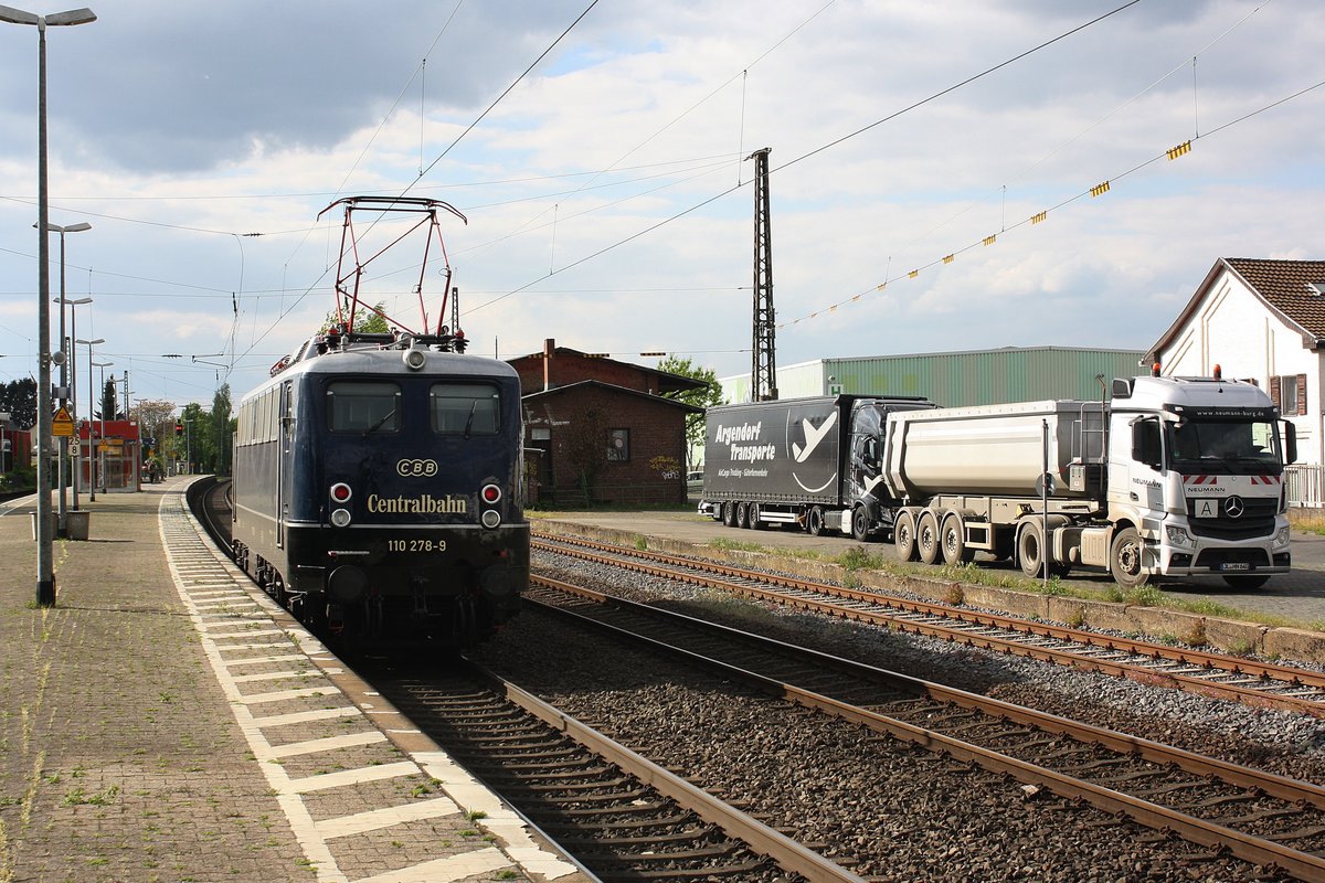 Ein Nachschuss auf die 110 278-9 der Centralbahn die aus Koblenz/Bonn kommend durch Roisdorf bei Bornheim in Richtung Köln unterwegs ist.