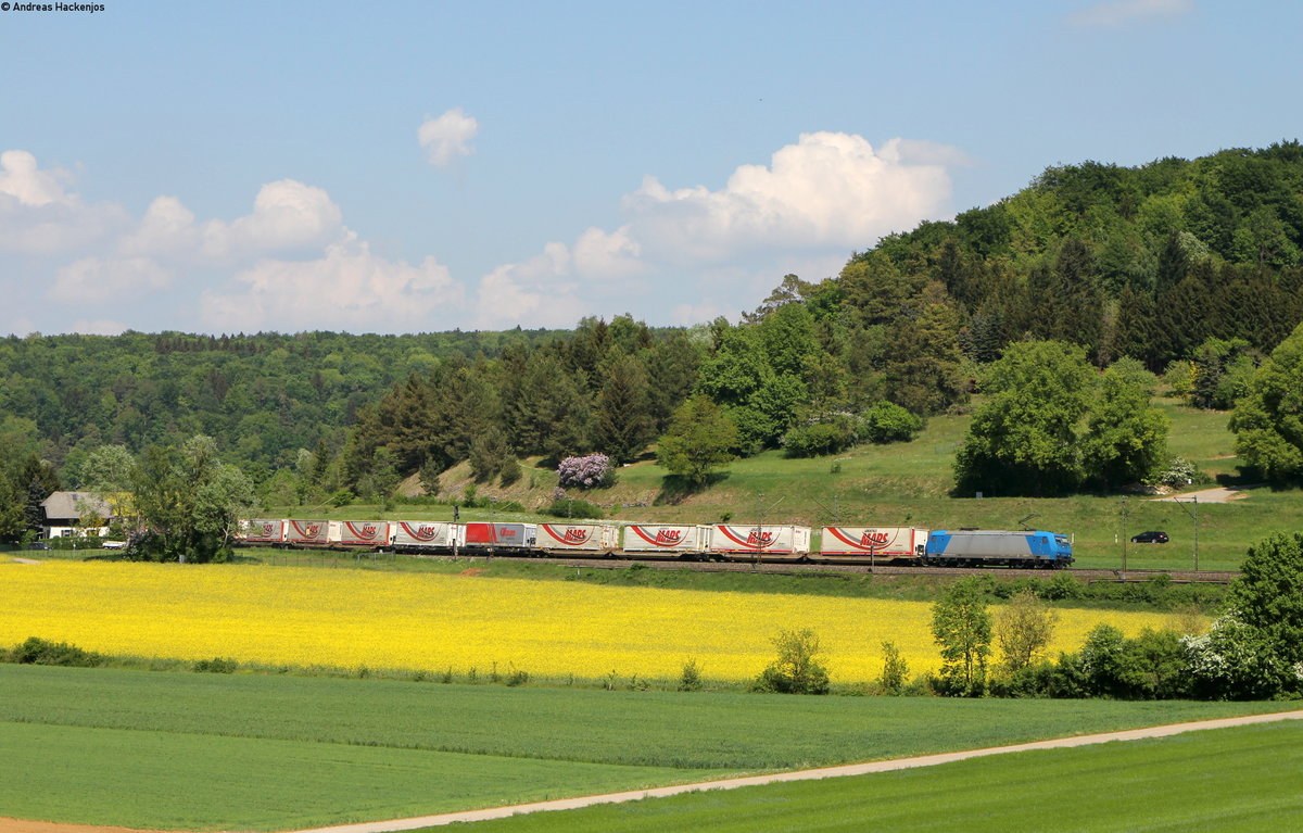 185 523-8 mit dem DGS 41563 (Bettembourg-München Laim Rbf) bei Urspring 12.5.18