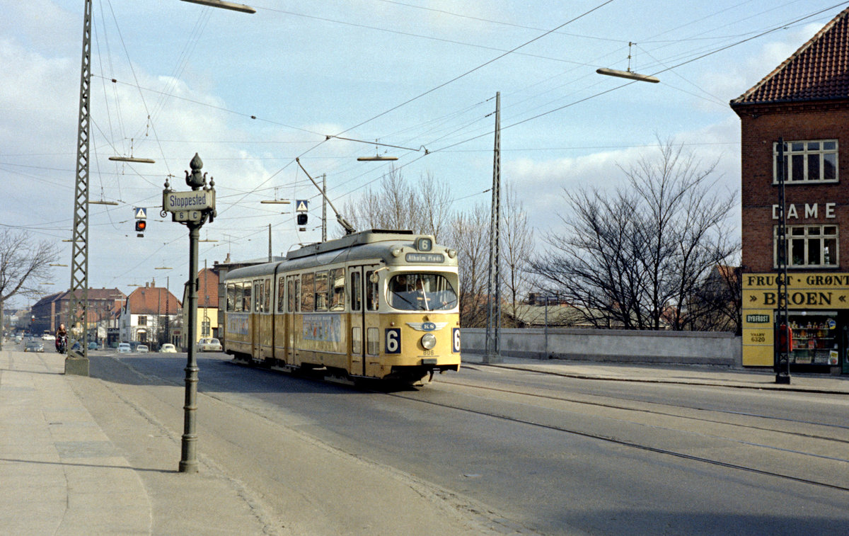 København / Kopenhagen Københavns Sporveje SL 6 (DÜWAG-GT6 806) Valby, Valby Langgade / Nakskovvej am 4. April (Karfreitag) 1969. - Scan eines Farbnegativs. Film: Kodak Kodacolor X.