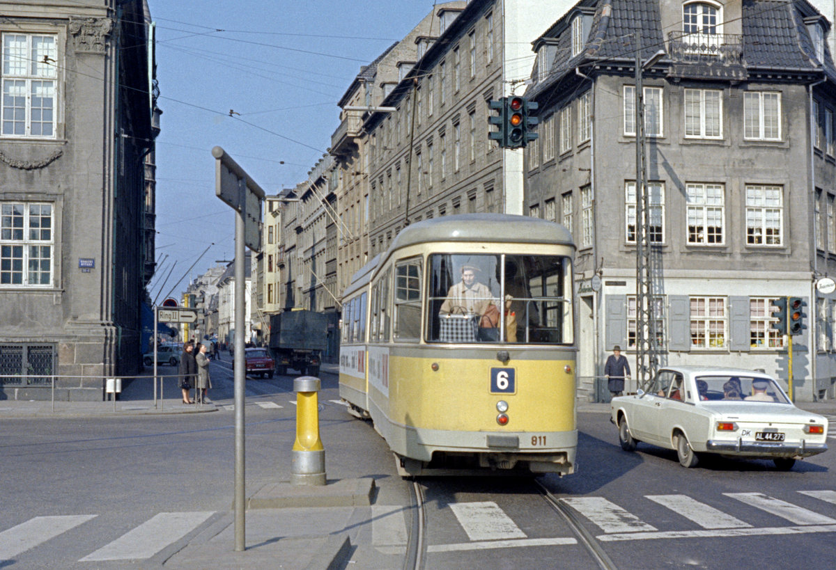 København / Kopenhagen Københavns Sporveje SL 6 (DÜWAG-GT6 811) København K, Stadtzentrum, Kongens Nytorv / Bredgade / Nyhavn am 5. April 1969. - Scan eines Farbnegativs. Film: Kodak Kodacolor X.