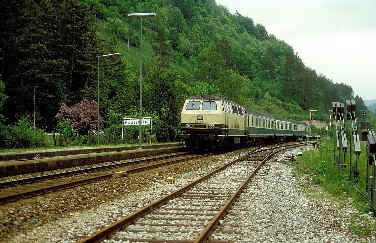 Anlässlich des Dampfspektakels 2018 um Trier waren auch Sonderzüge auf der Strecke nach Saarbrücken unterwegs. V200 033 war am 1.5.2018 mit DPE 61954 auf dem Weg von Merzig Trier und passierte den Steinbruch kurz vor dem Bahnhof Taben.