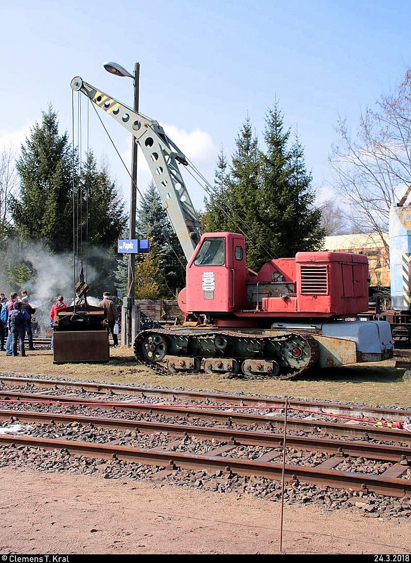 Blick einen Kohlekran, der im Eisenbahnmuseum Leipzig-Plagwitz während der 21. Leipziger Eisenbahntage steht. [24.3.2018 | 11:13 Uhr]