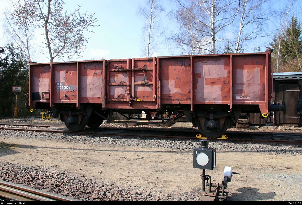 Blick einen offenen Güterwagen (ex DB 80 950 2 000-9), der im Eisenbahnmuseum Leipzig-Plagwitz während der 21. Leipziger Eisenbahntage steht. [24.3.2018 | 11:22 Uhr]