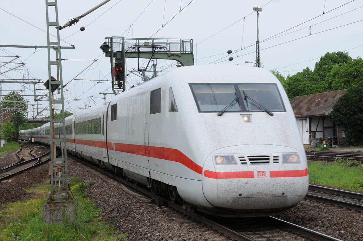 Nachschuss auf eine BR 411 als ICE 1631 (Linie 15) von Frankfurt(Main)Hbf nach Berlin Südkreuz, die Halle(Saale)Hbf auf Gleis 8 verlässt. Fotografiert mit dem Smartphone. [10.3.2018 | 17:45 Uhr]