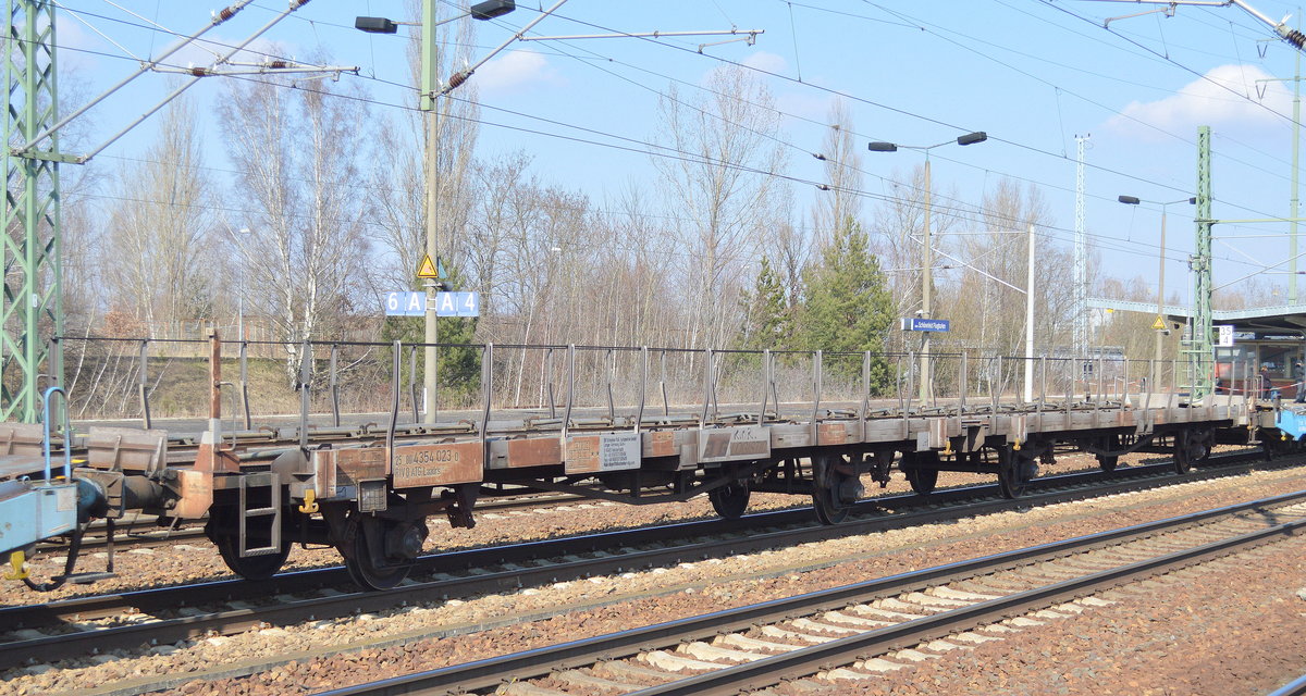Flachwageneinheit zum Transport von Fahrzeugen der Fa. DB Schenker Rail Automotive GmbH mit der Nr. 25 RIV 80 D-ATG 4354 023-0 Laadrs 557 am 30.03.18 Bf. Flughafen Berlin-Schönefeld.