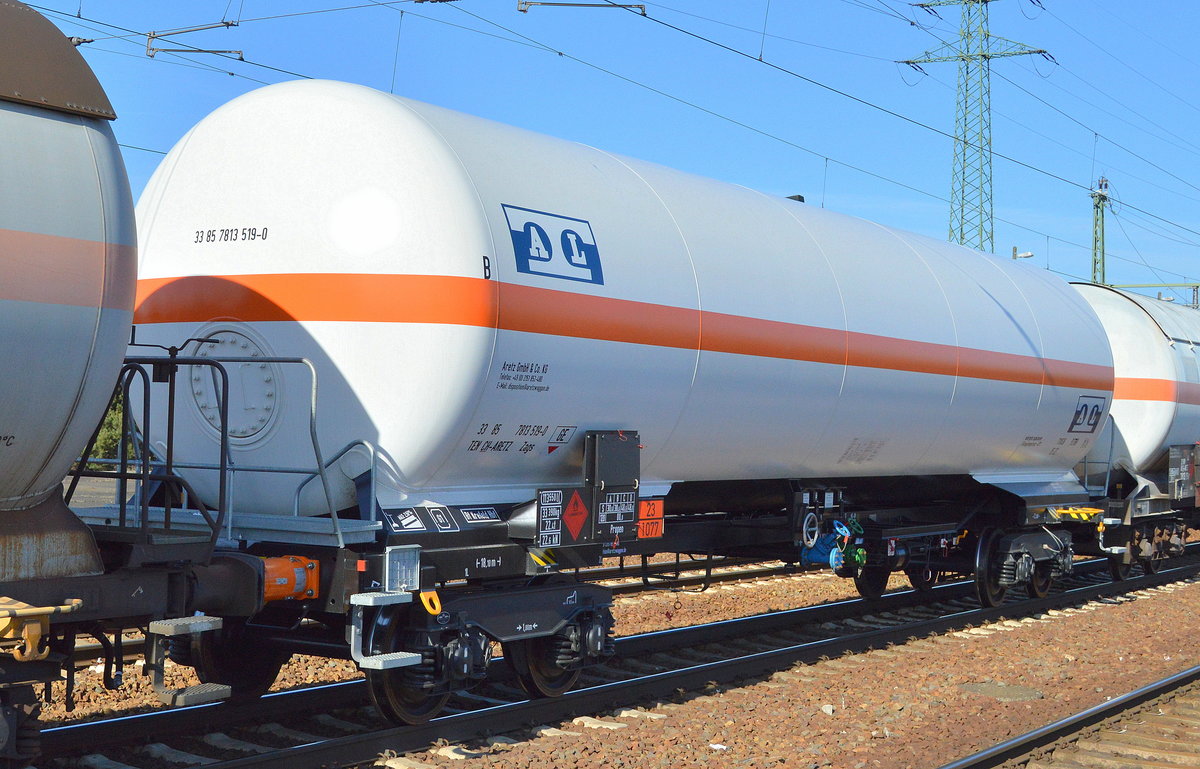 Gasdruckkesselwagen der Fa. Aretz GmbH & Co.KG mit Zulassung in der Schweiz mit der Nr. 33 TEN 85 CH-ARETZ 7813 519-0 Zags Bf. Krefeld Hbf (UN-Nr.: 23/1077 = Propen) am 18.03.18 Bf. Flughafen Berlin-Schönefeld.