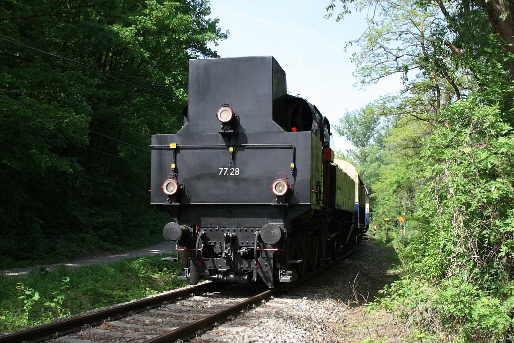 ÖGEG 77.28 am 01.Mai 2018 auf der Kaltenleutgebenerbahn vor dem SR 14720 (Ladestelle Waldmühle - Wien Meidling) beim Strecken-km 3,6.