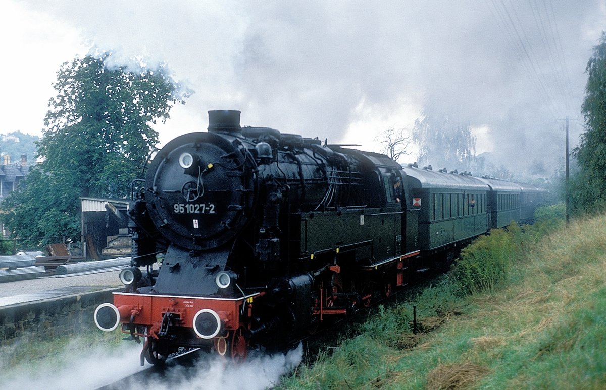 Scheinanfahrt von 99 5906 mit Jubiläumssonderzug am 07.07.2018 bei Güntersberge. (Bild 1)