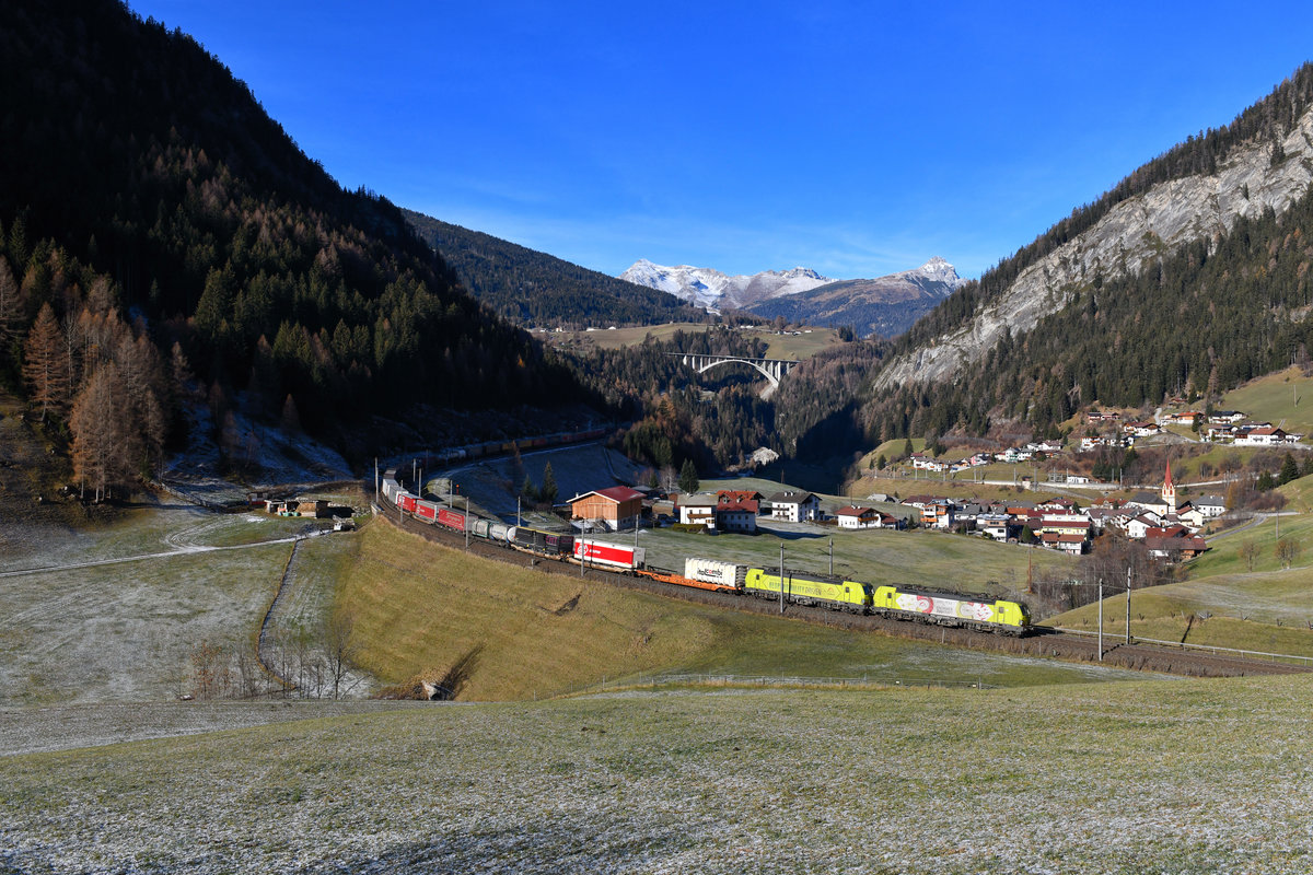 193 550 + 193 553 mit TEC 43100 am 21.11.2018 bei St. Jodok am Brenner.