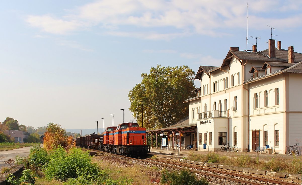 203 405 und 203 383 (SWT) zu sehen am 17.10.18 mit dem Stahlzug Könitz-Cheb/Cz in Pößneck oberer Bahnhof.