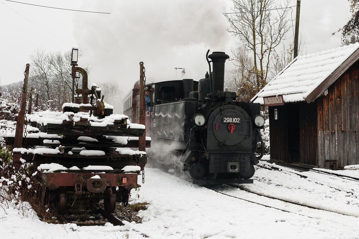 298.102 fährt am 27.11.18 durch die verschneite Hst Waldneukirchen