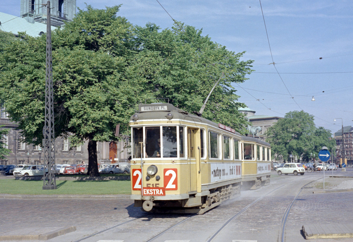 København / Kopenhagen Københavns Sporveje SL 2 (E-Zug; Tw 515 + Bw 1556) København K, Slotsholmen, Børsgade / Christiansborg Slotsplads / Holmens Bro am 6. Juni 1969. - Scan eines Farbnegativs. Film: Kodak Kodacolor X.