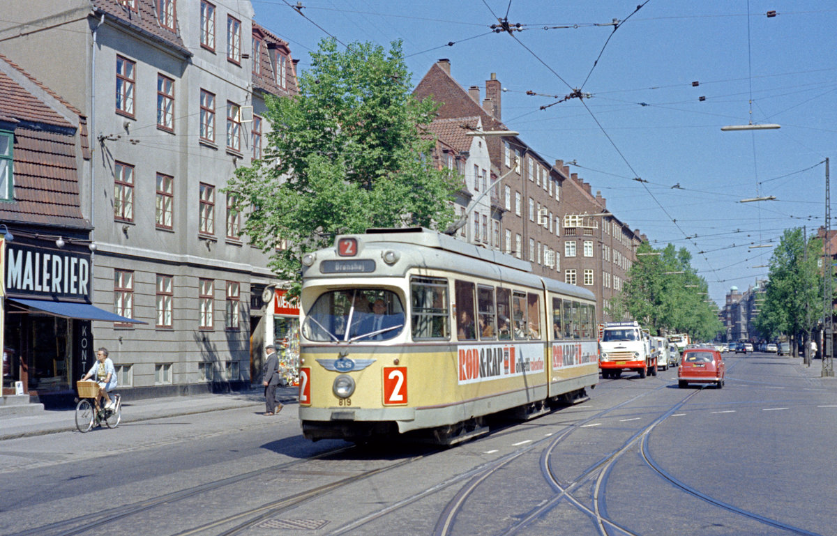 København / Kopenhagen Københavns Sporveje SL 2 (DÜWAG/Kiepe-GT6 819) København S, Sundbyøster, Amagerbrogade / Sundby Remise (: Straßenbahnbetriebsbahnhof Sundby) am 9. Juni 1969. - Scan eines Farbnegativs. Film: Kodak Kodacolor X.