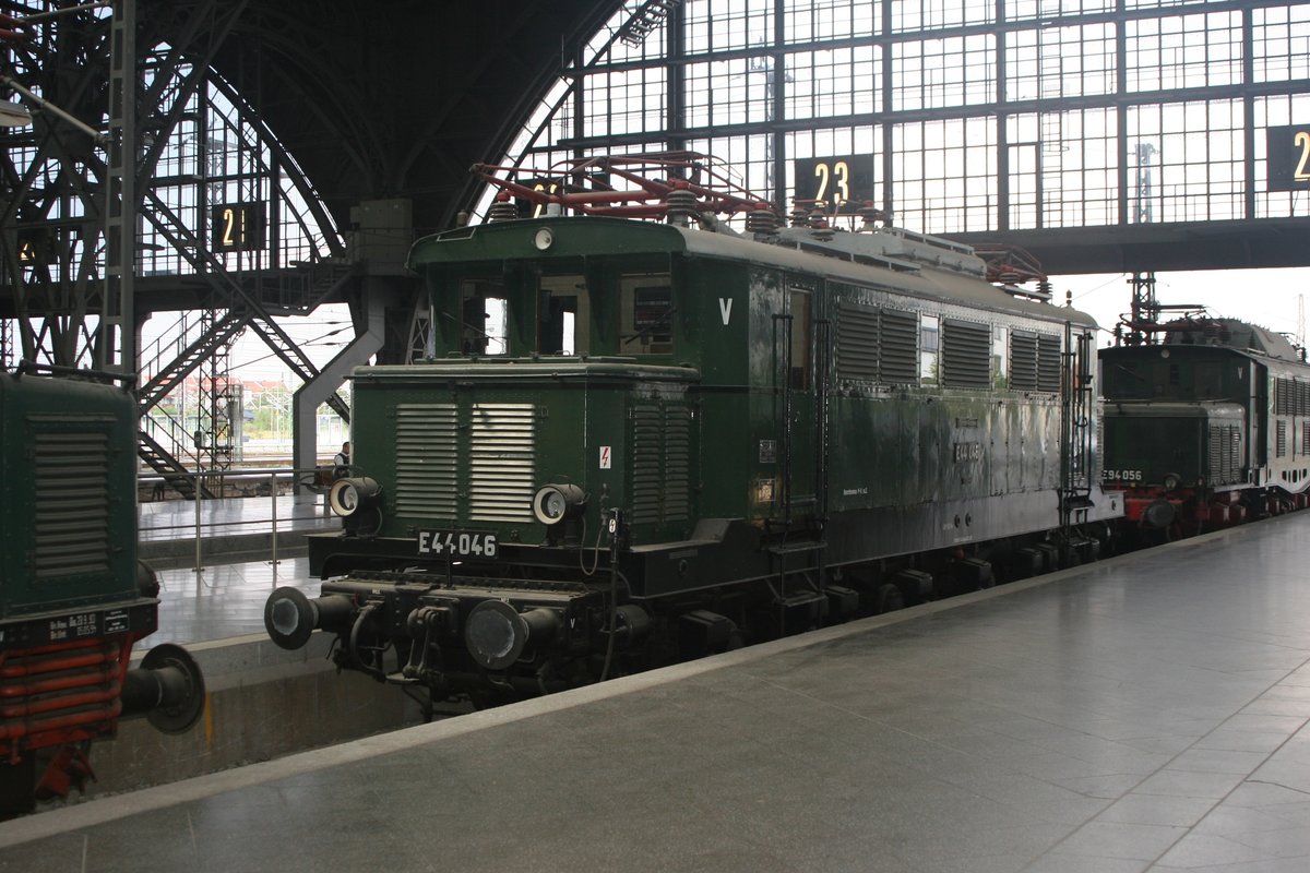 Um eine einigermassen gelungene Aufnahme der E 44 046 zu erhalten, wechselte ich auf den Bahnsteig 25. Die Lok steht in einem so sauberen Zustand in der Halle, dass sie vom Bahnsteig 24 aus sehr verspiegelt rüber kam. Auch diese lok kann mit einer internationalen Immatrikulation aufwarten: 97 80 8 144 046-0 D-DB.