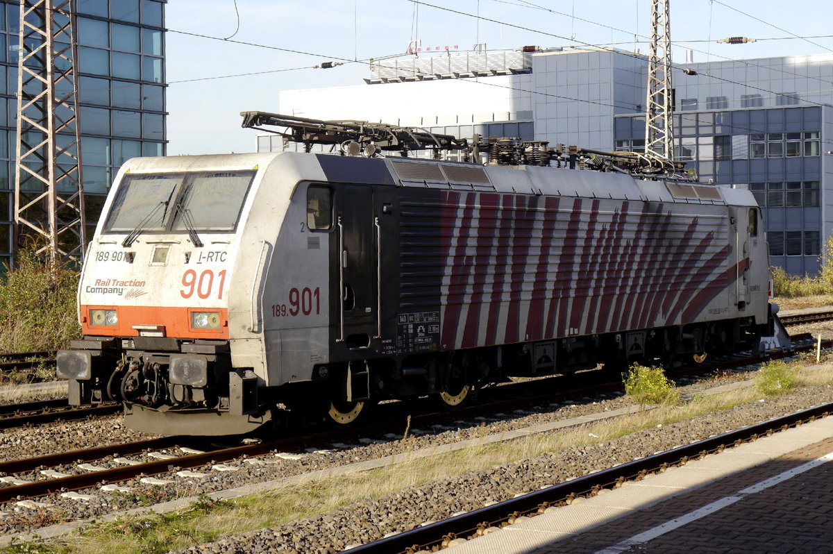 189 901 der Rail Traction Company, die auf der Front als I-RTC firmiert, in der NVR aber ein deutsches Kürzel verwendet (91 80 6 189 901-2 D-RTC) in Duisburg Hbf, 2.11.18.