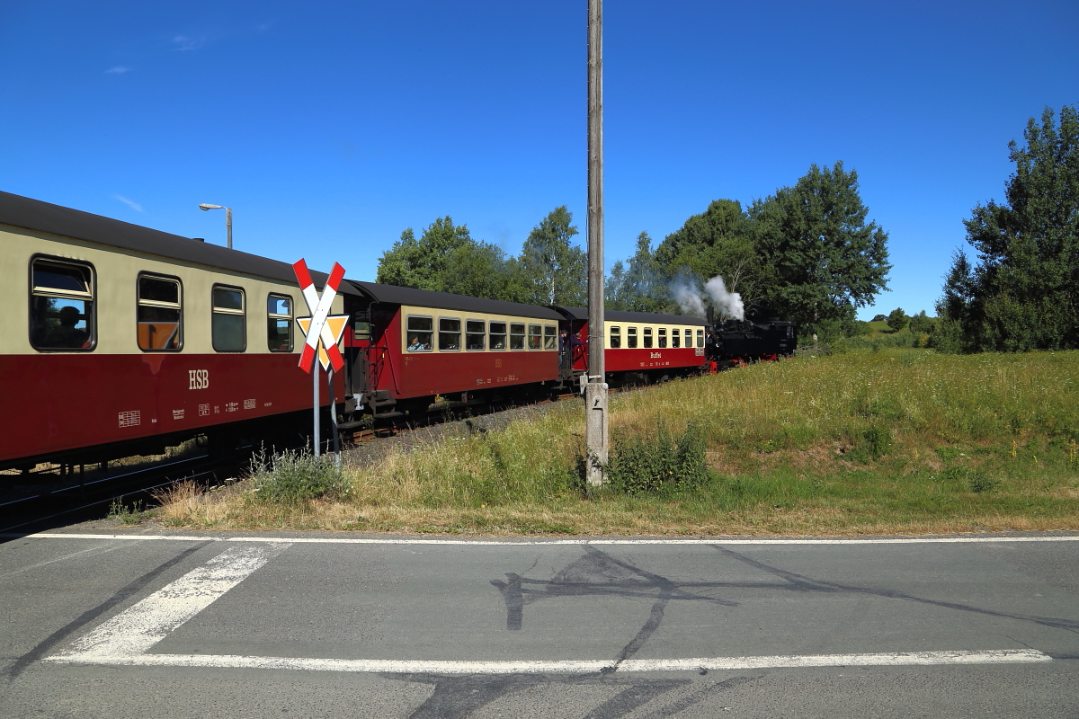 Am ehemaligen Steinbruch am südlichen Königsberg kam mir dann noch 8920 entgegen bzw. holte mich ein, die einzige Stelle, wo der Brockenzug scheinbar vom Ziel, dem Brocken wegfährt. 10.10.18