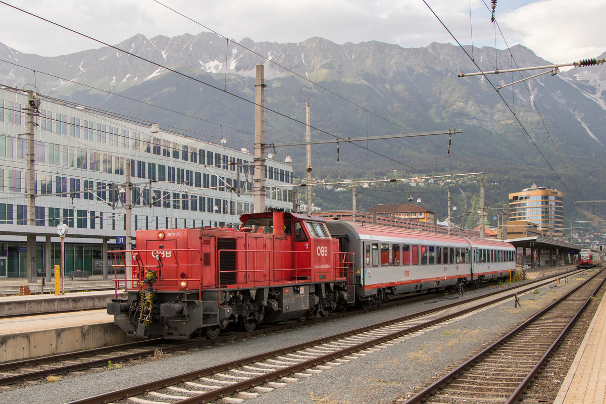 2070 073-9 leistet am 31. Mai 2018 im Bahnhof Innsbruck gerade Verschubdienste.