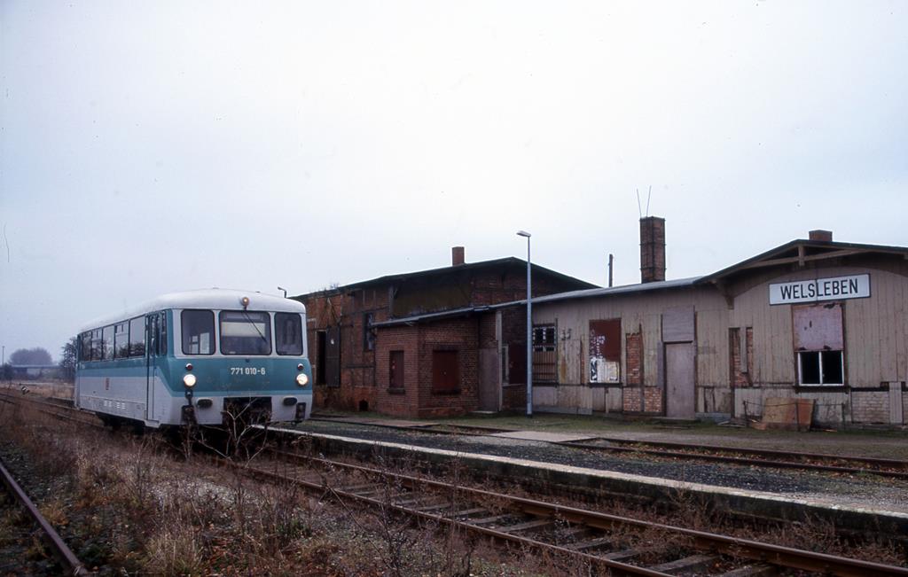 771010 hält hier als RB von Schönebeck nach Blumenberg am 24.1.1999 in Welsleben.