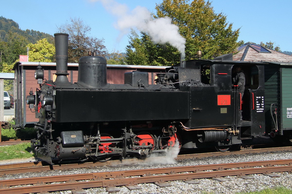 BWB Lok U25 mit dem Nostalgiezug im Bahnhof Bezau.30.09.18
