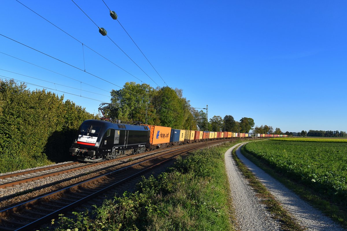 182 524 mit einem Containerzug am 29.09.2018 bei Langenisarhofen.