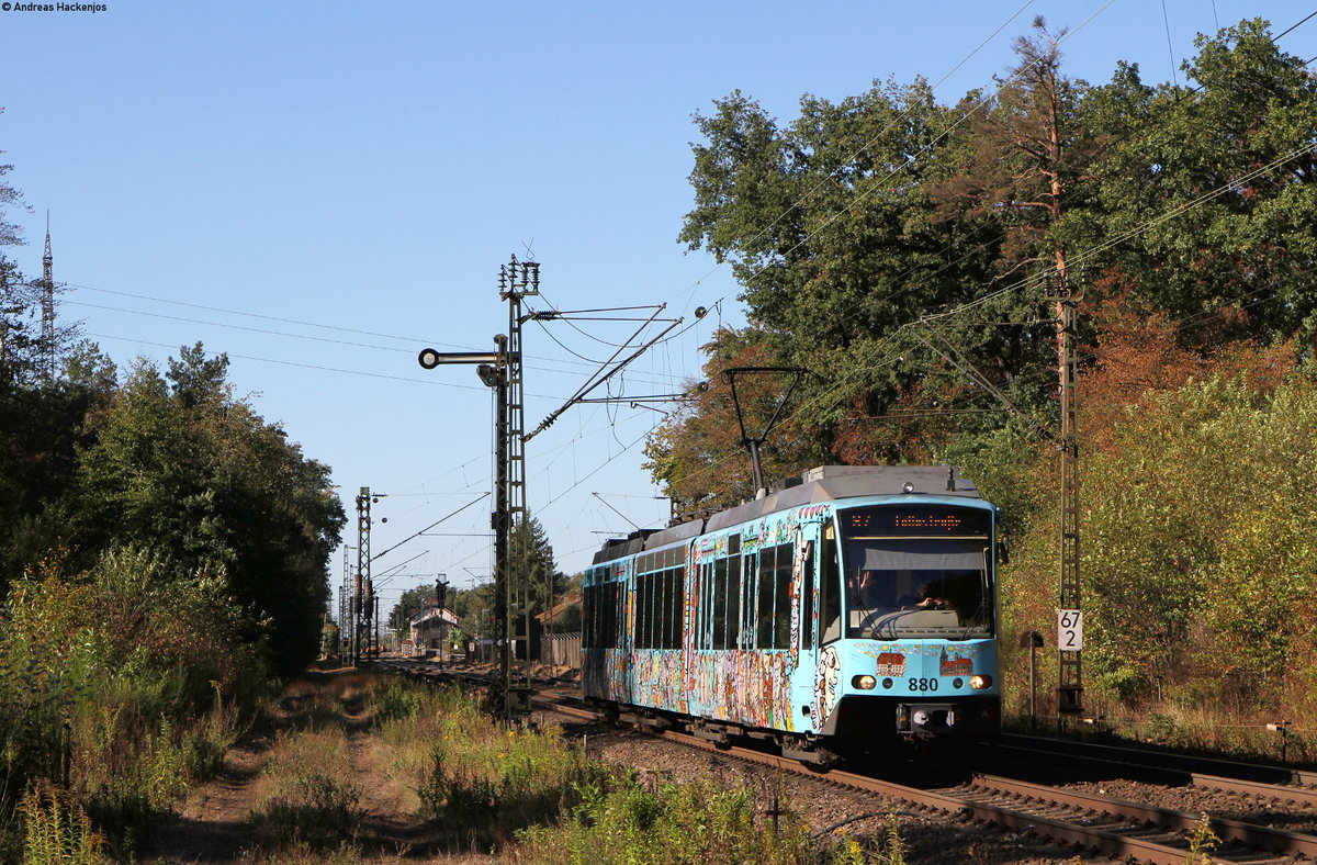 Duewag/Siemens GT8-100D/2S-M, Wagen 873, der Stadtbahn Karlsruhe als S 31 nach Odenheim Bf steht in ihrem Startbahnhof Karlsruhe Hbf auf Gleis 13.