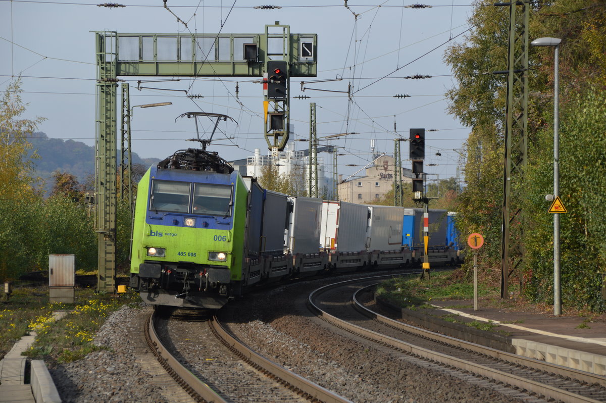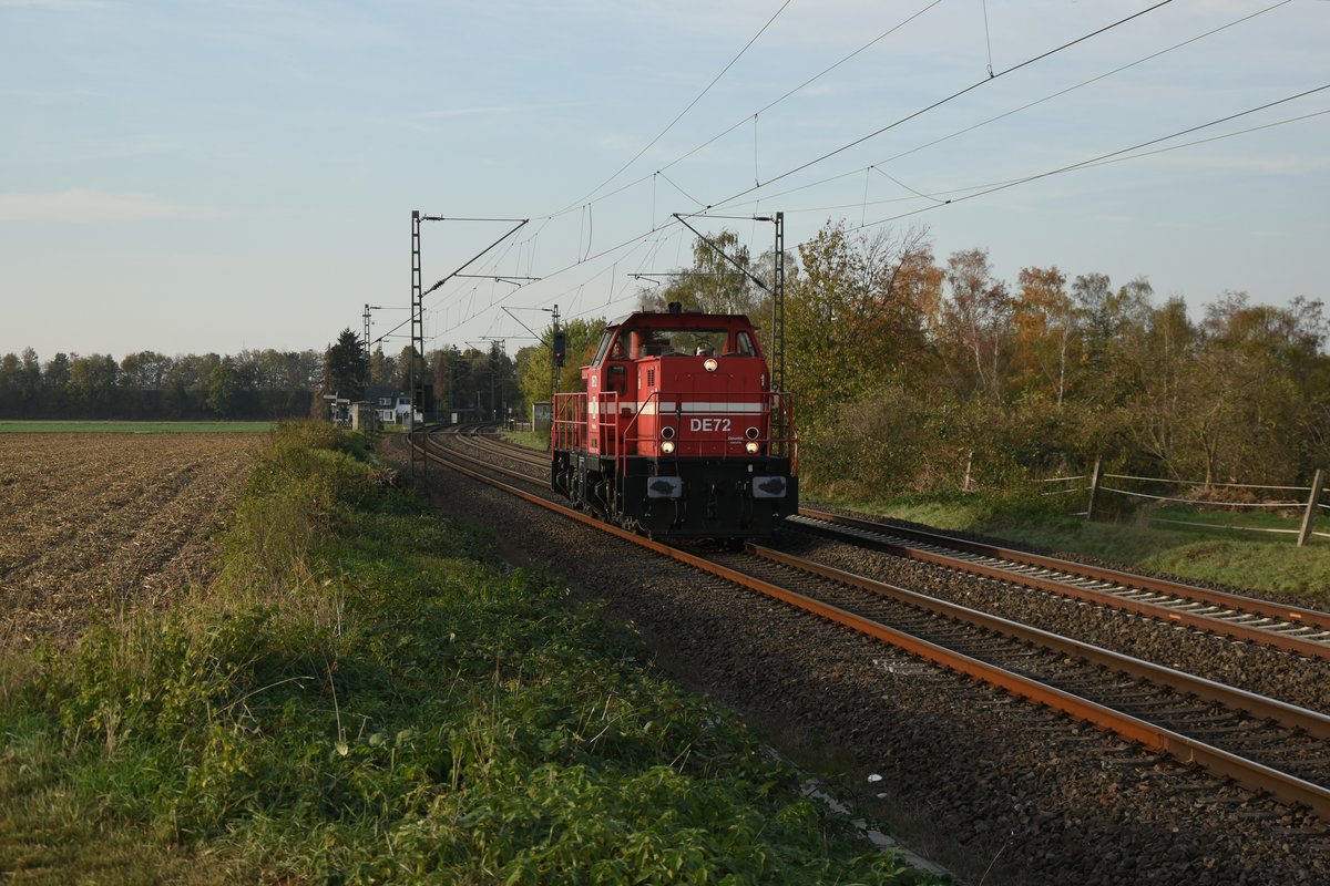 Lz kommt die DE72/0272 010 der RHC aus Richtung Osterath am Abend des 20.10.2018 zurück, nach dem sie am Nachmittag einen Containerzug in Richtung Osterath gefahren hatte.