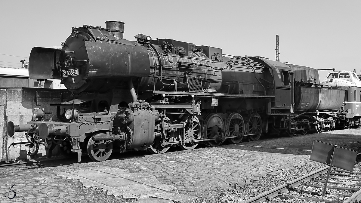Die Dampflokomotive 52 8068-0 Anfang April 2018 im Sächsischen Eisenbahnmuseum Chemnitz-Hilbersdorf.