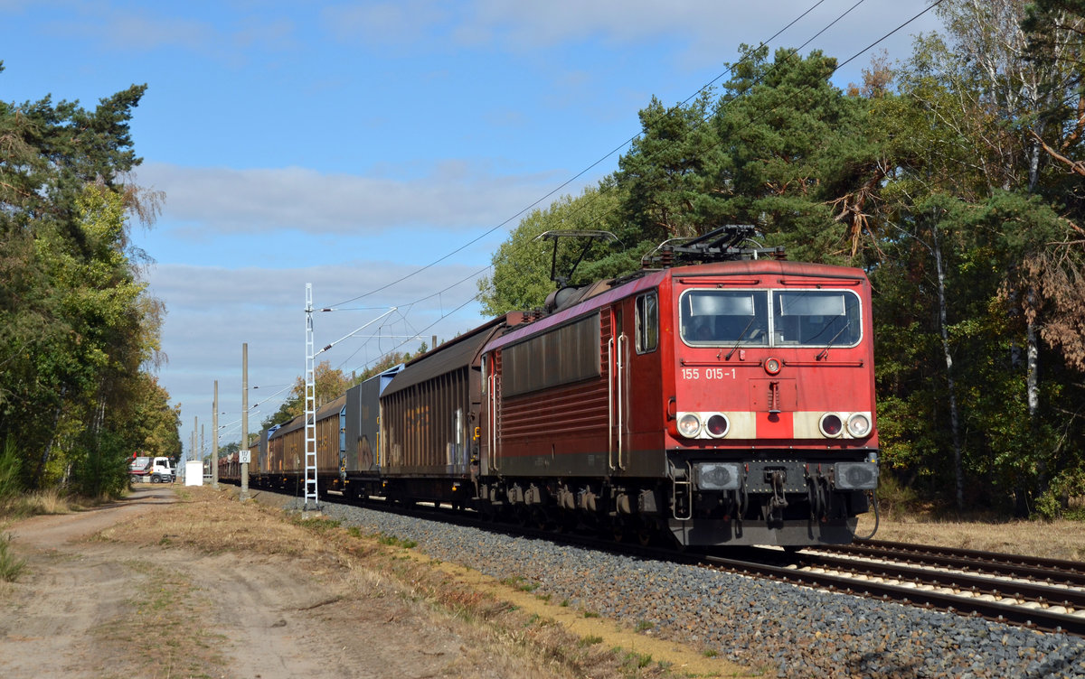 Mit einem Autologistiker rollte 155 015 am 27.09.18 durch Marxdorf Richtung Zeithain.