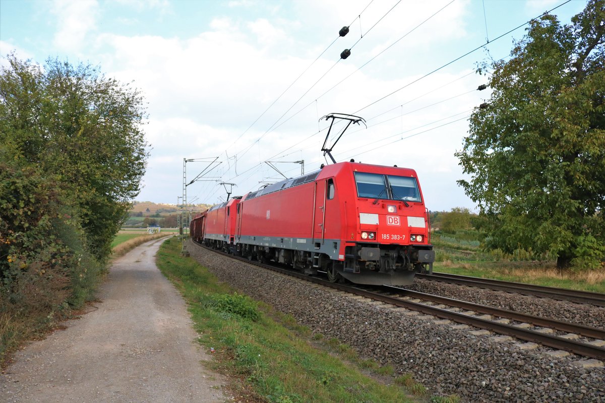LZ aus sieben Loks der Baureihe 185 auf der Riedbahn auf KBS 655 am 25.10.2018.