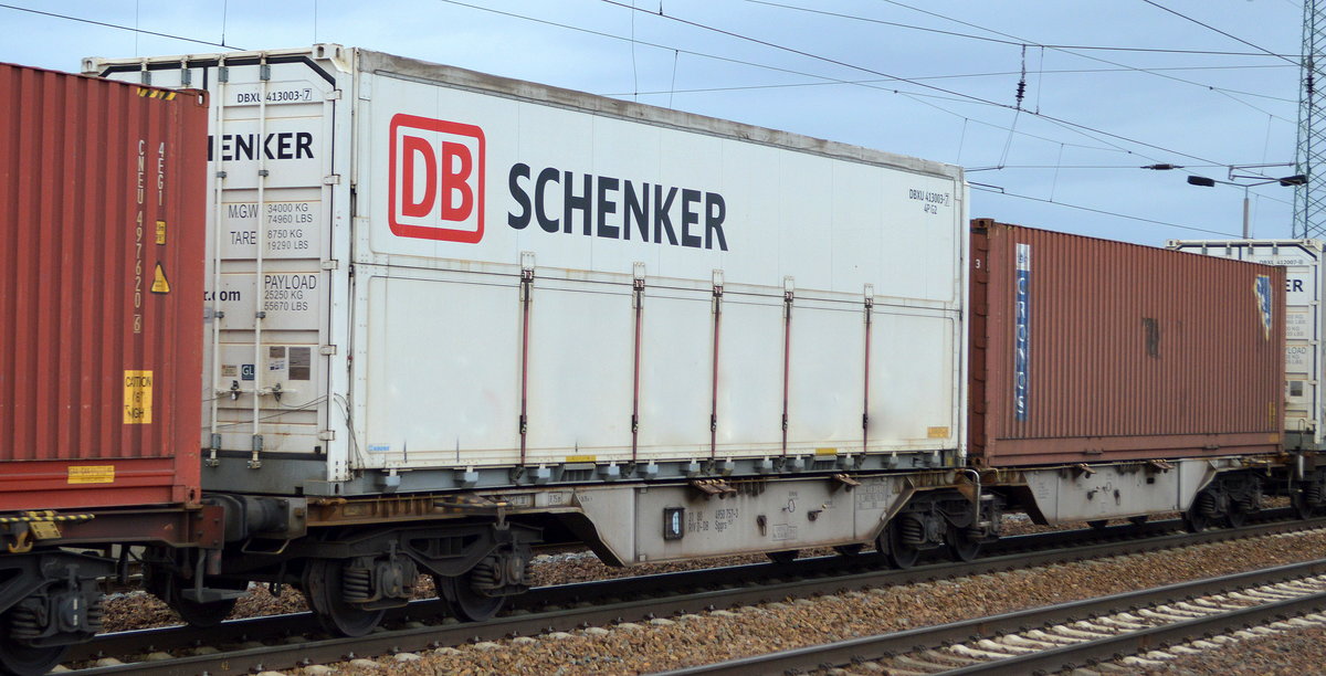 Gelenk-Containertragwagen der DB Cargo mit der Nr. 31 RIV 80 D-DB 4950 757-3 Sggrs 757 am 04.10.18 Bf. Flughafen Berlin-Schönefeld.