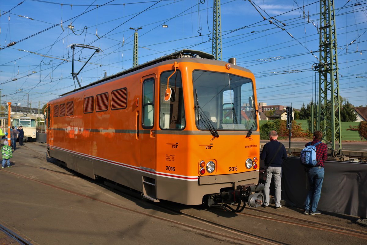VGF Fahrzeugparade zum Jubiläum 50 Jahre U-Bahn Frankfurt am Main am 06.10.18 in Heddernheim mit Düwag 2016 Arbeitswagen