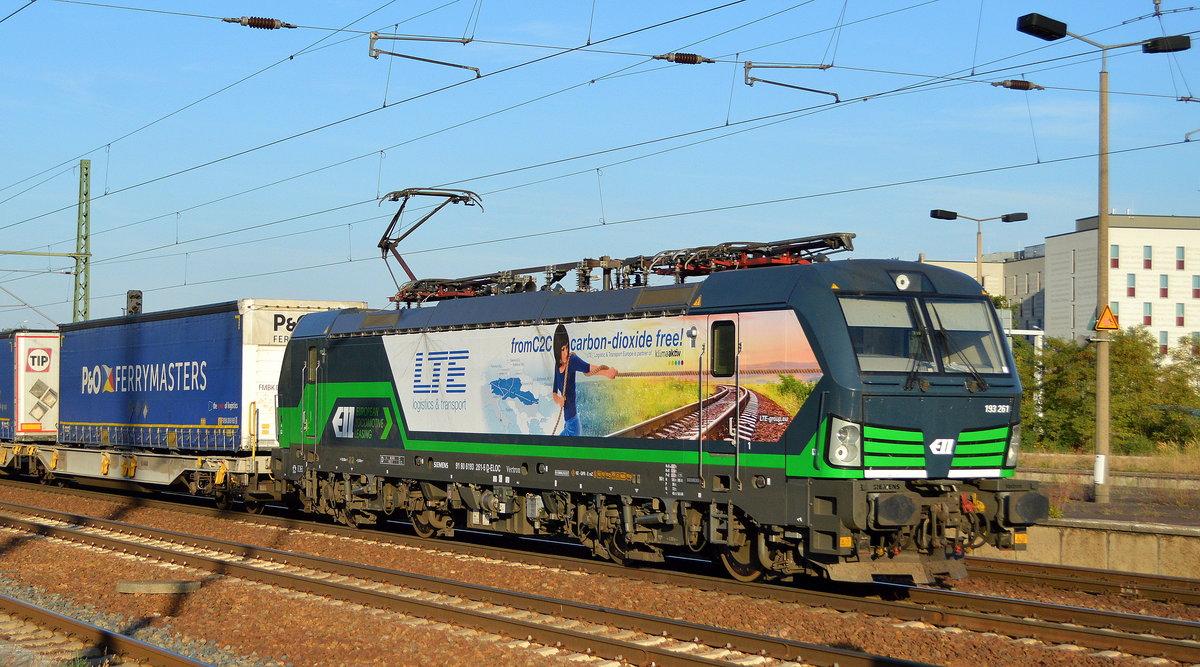 LTE Logistik- and Transport- GmbH mit der ELL Vectron "193 261" [NVR-Number: 91 80 6193 261-5 D-ELOC] und KLV-Zug Richtung Rotterdam am 18.09.18 Bf. Flughafen Berlin-Schönefeld.
