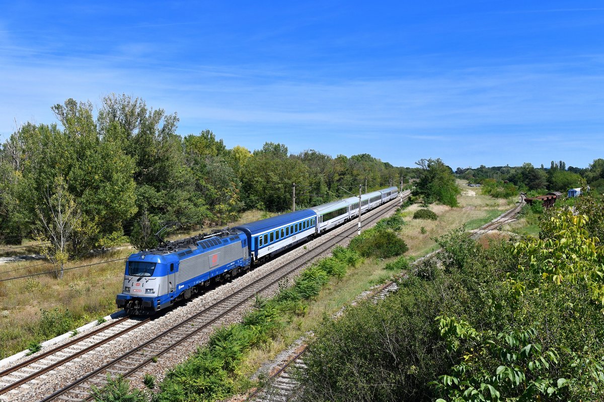 E-Lok 91-53-0-461058-6 mit neu gestrichene Personenwagengarnitur am 21.09.2018 kurz nach Verlassen des bukarester Nordbahnhofs.