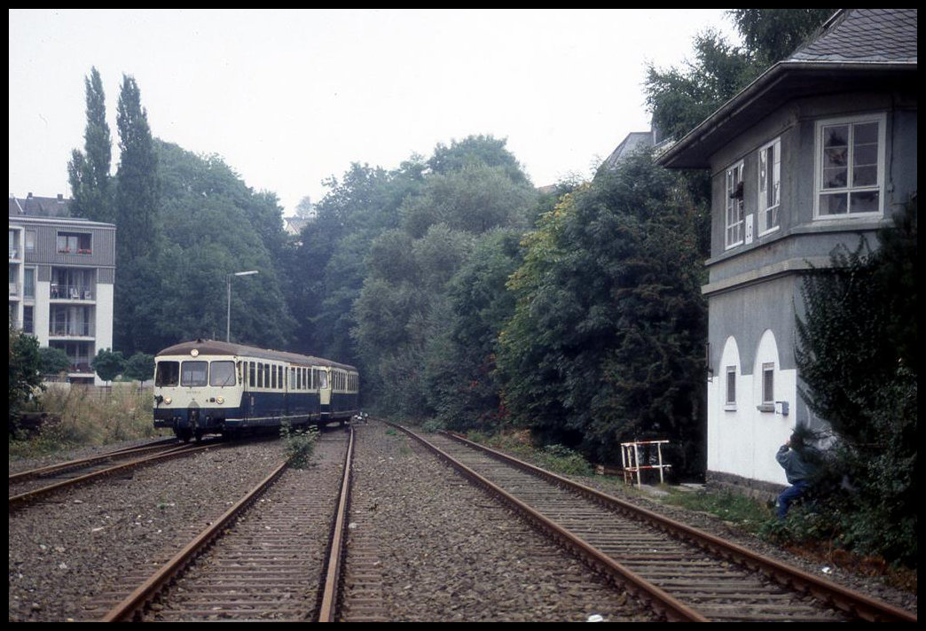 ETA Triebwagen 515591 fährt hier am 16.9.1995 in Wuppertal Loh ein.