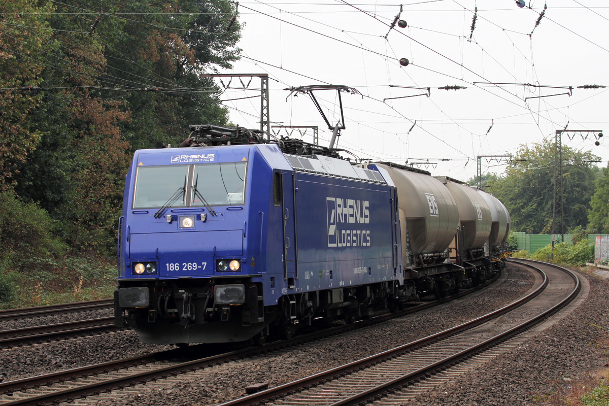 RheinCargo GmbH & Co. KG mit "187 070-8" [NVR-Number: 91 80 6187 070-8 D-RHC] und Kesselwagenzug am 03.09.18 Bf. Flughafen Berlin-Schönefeld.