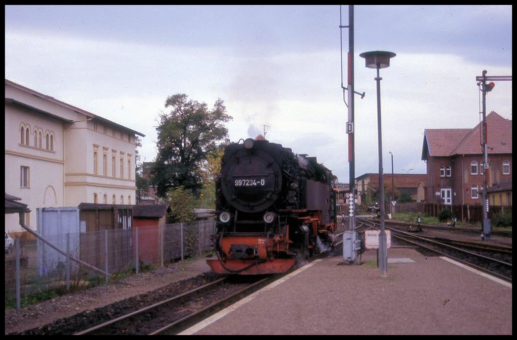 Am 2.10.1995 stand die 99582 angeheizt neben der Diesellok VC10 Nr.1 im Bahnhof Schönheide.