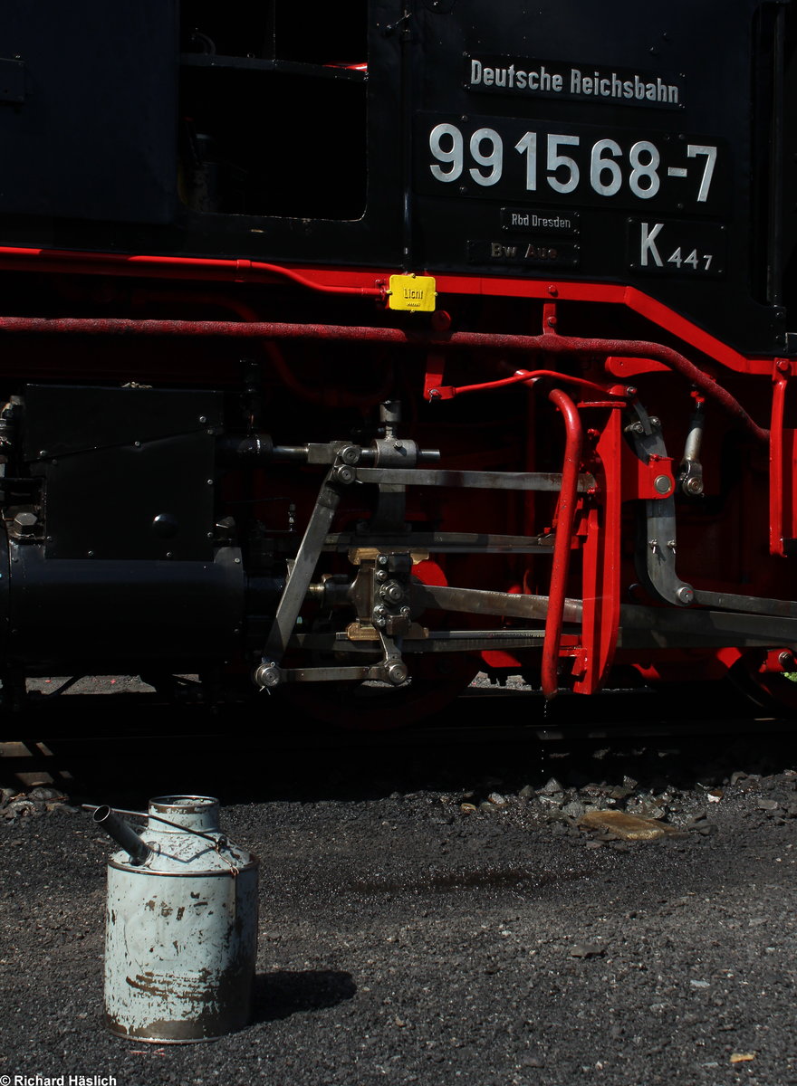 Nochmal Grüßen und dann gleich Wasser holen. 99 1568-7 beim Rangieren in Steinbach.