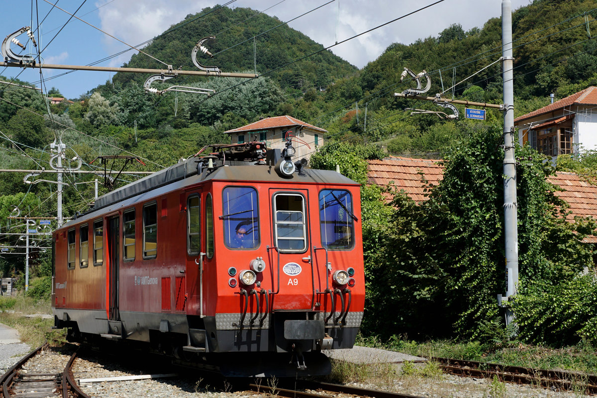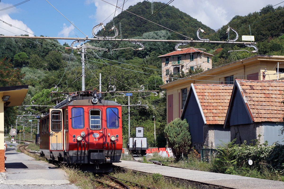 Triebwagen A 9 als Zug 12 bei Vicomorasso in Richtung Genova P. Manin unterwegs am 5. September 2018.