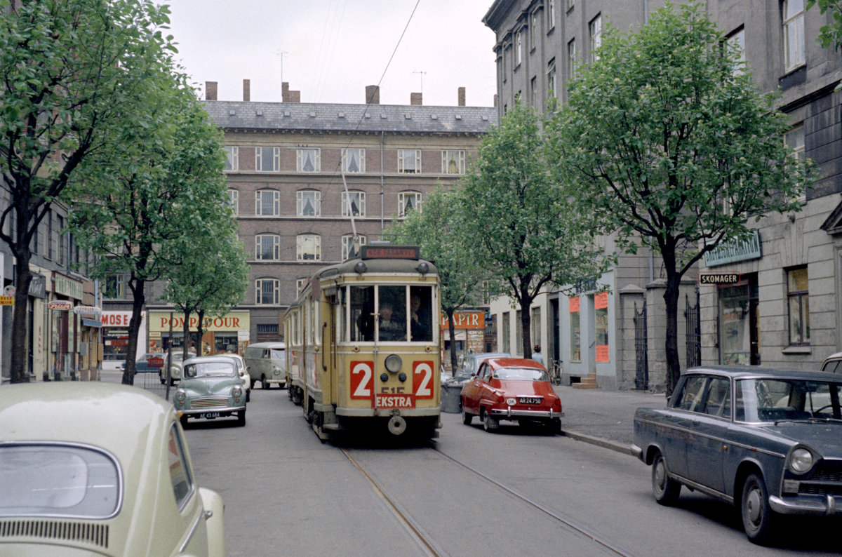 København / Kopenhagen Københavns Sporveje SL 2 (E-Wagen; Tw 515 + Bw 15**) Frederiksberg, Holger Danskes Vej am 3. Juni 1969. - Scan eines Farbnegativs. Film: Kodak Kodacolor X.