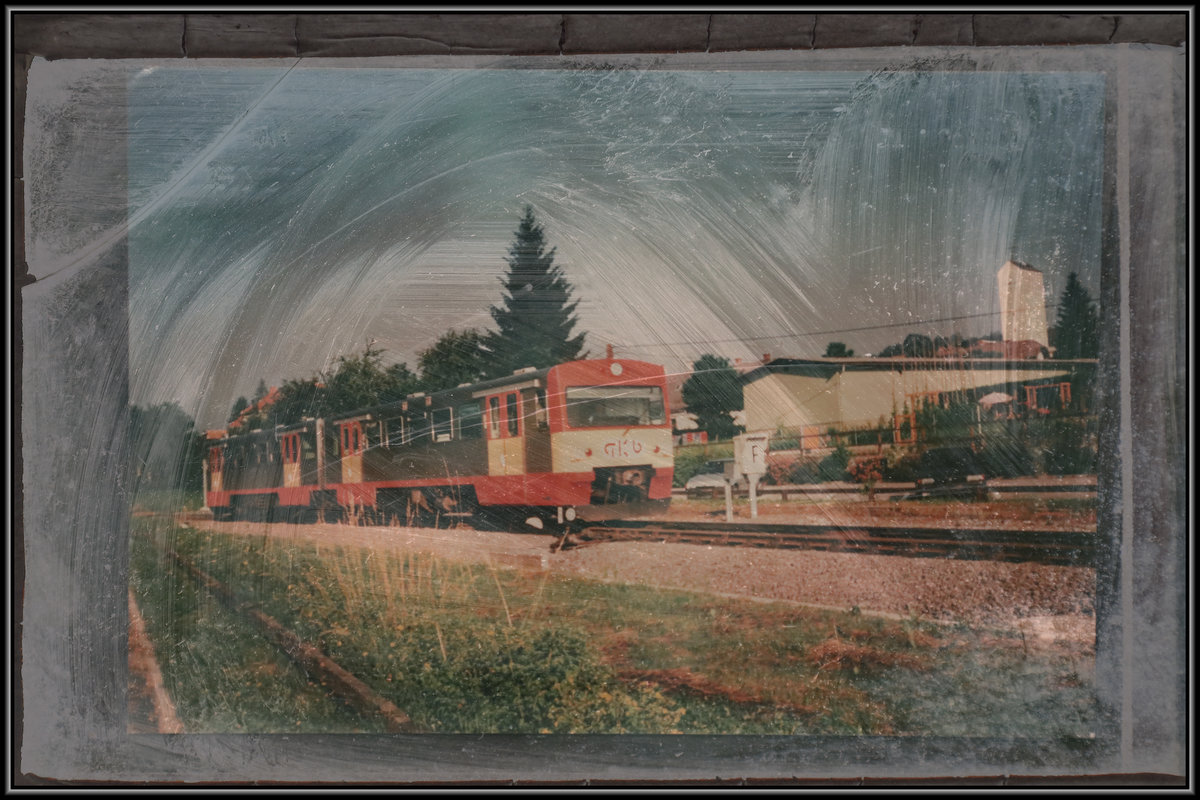 06.08.2002, Burgenland, Bahnhof Frauenkirchen, ungarisches Triebwagenpaar der ROeEE/GYSEV (Raab-Ödenburger Eisenbahn) nach Fertöszentmiklos, vorn Tw 5147 511.