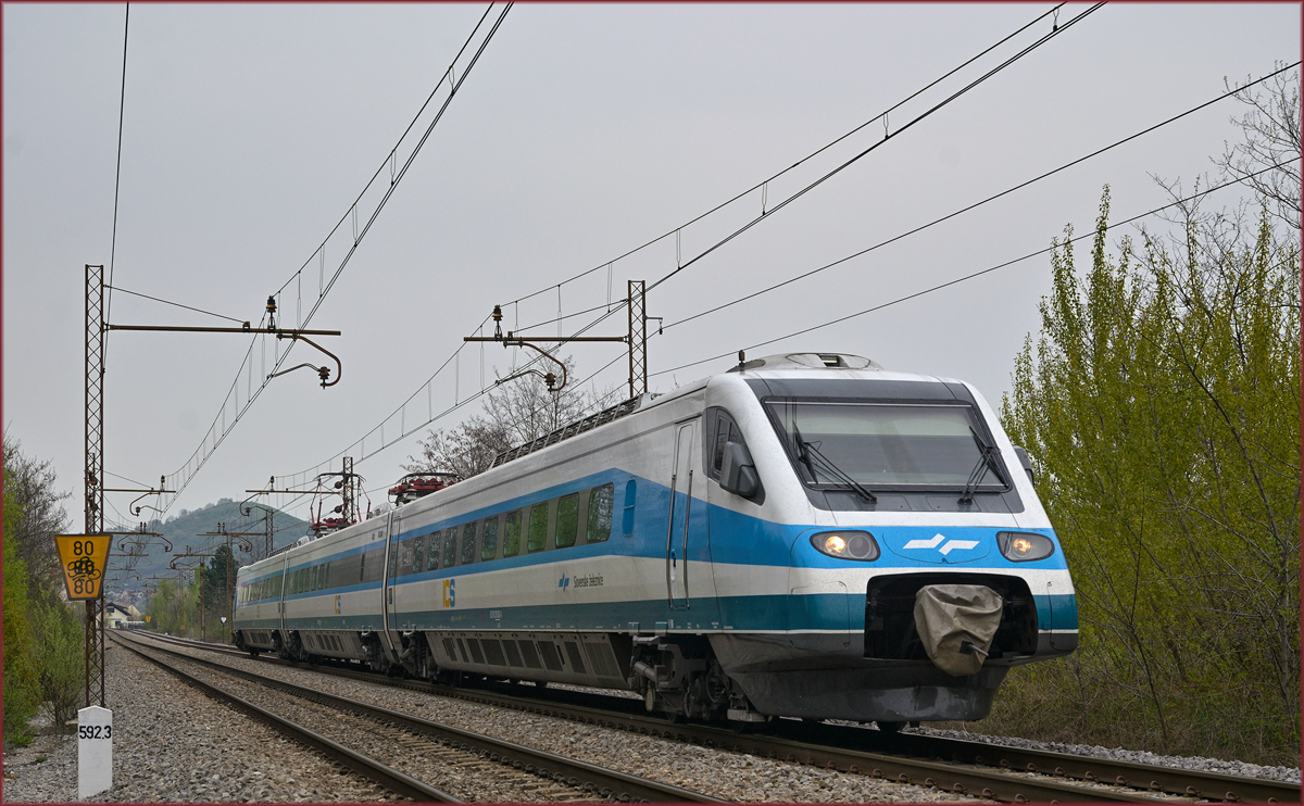 SŽ 310-? fährt durch Maribor-Tabor Richtung Ljubljana. /13.4.2019