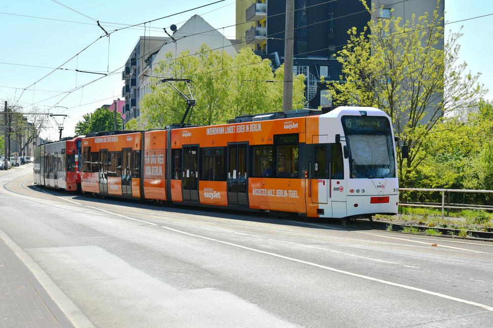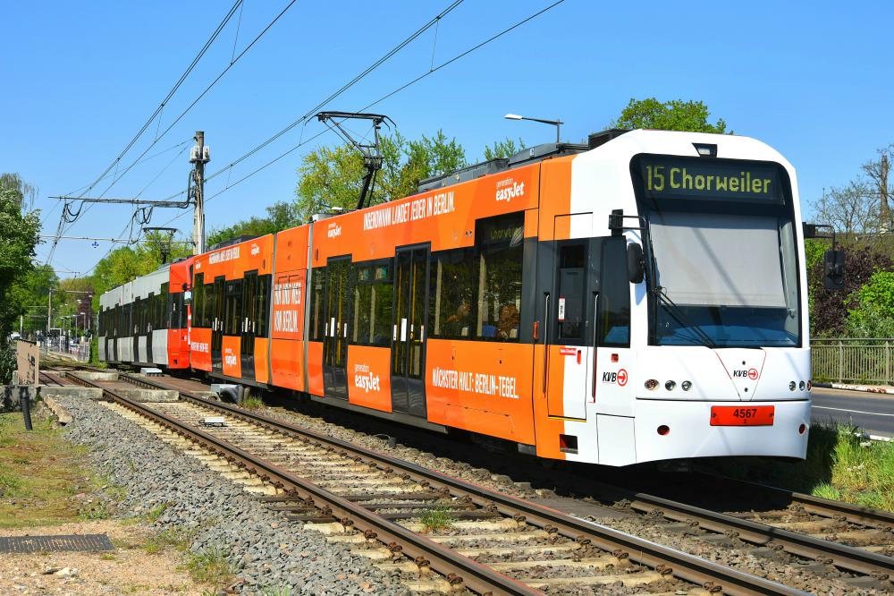 4567 mit neuer "easyJet"-Ganzreklame auf der Neusser Straße am 21.04.2019.