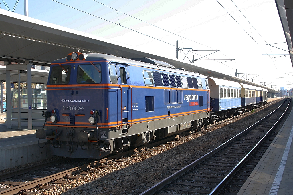 RBAHN 2143 062-5 mit dem, vom Verein Kaltenleutgebner Bahn veranstalteten, SEZ 14697 (Wien Hbf. - Waldmühle) am 22.April 2019 im Bahnhof Wien Meidling.