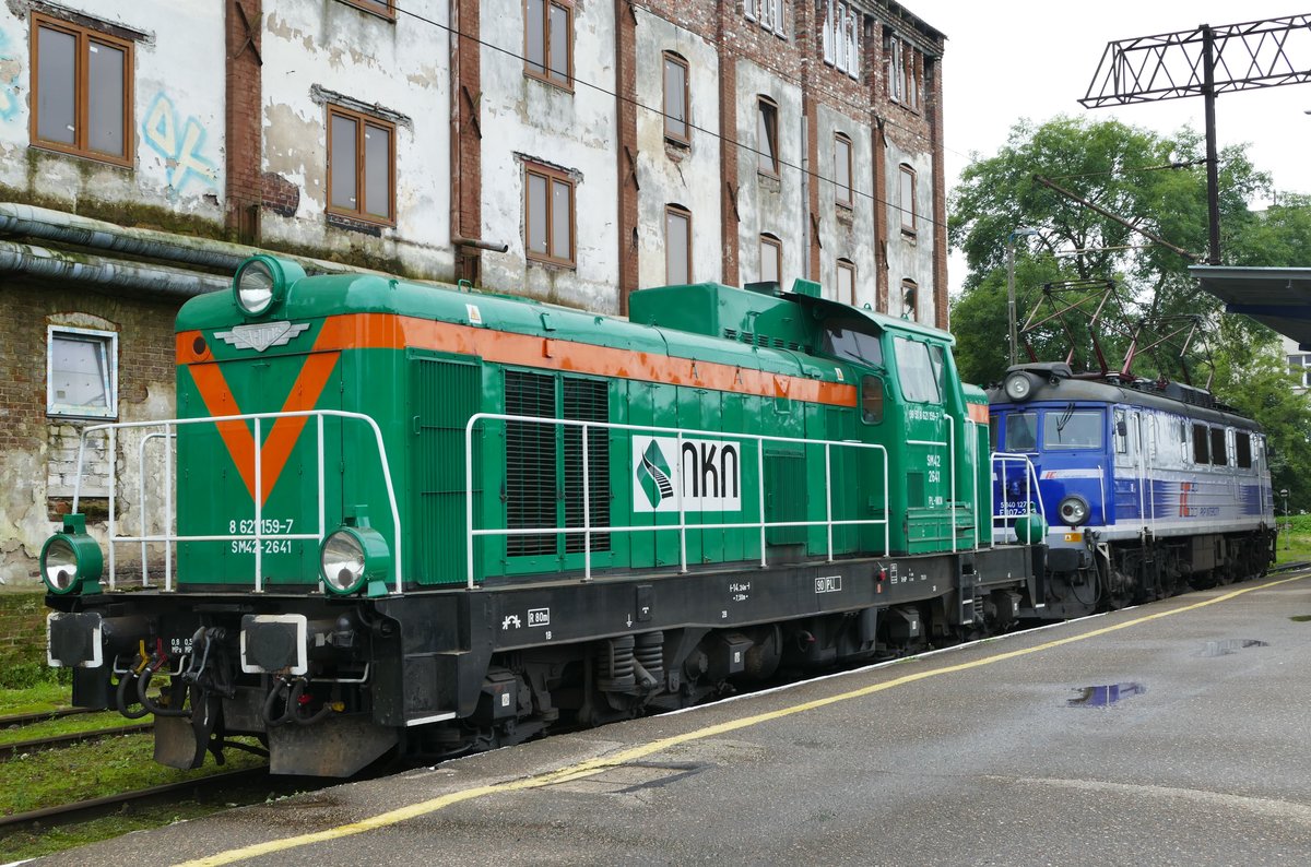 26.09.2018, Polen. Auf dem Liegnitzer Bahnhof gab es recht unterhaltsamen Betrieb. Ein bisschen vor und zurück mit Diesel und Strom war ganz amüsant. Hier kommt SM42-802 vorüber.