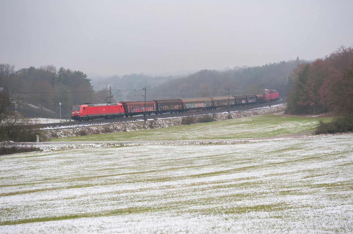 1016 001 und 185 254 mit einem gemischten Güterzug bei Edlhausen Richtung Regensburg, 22.11.2018