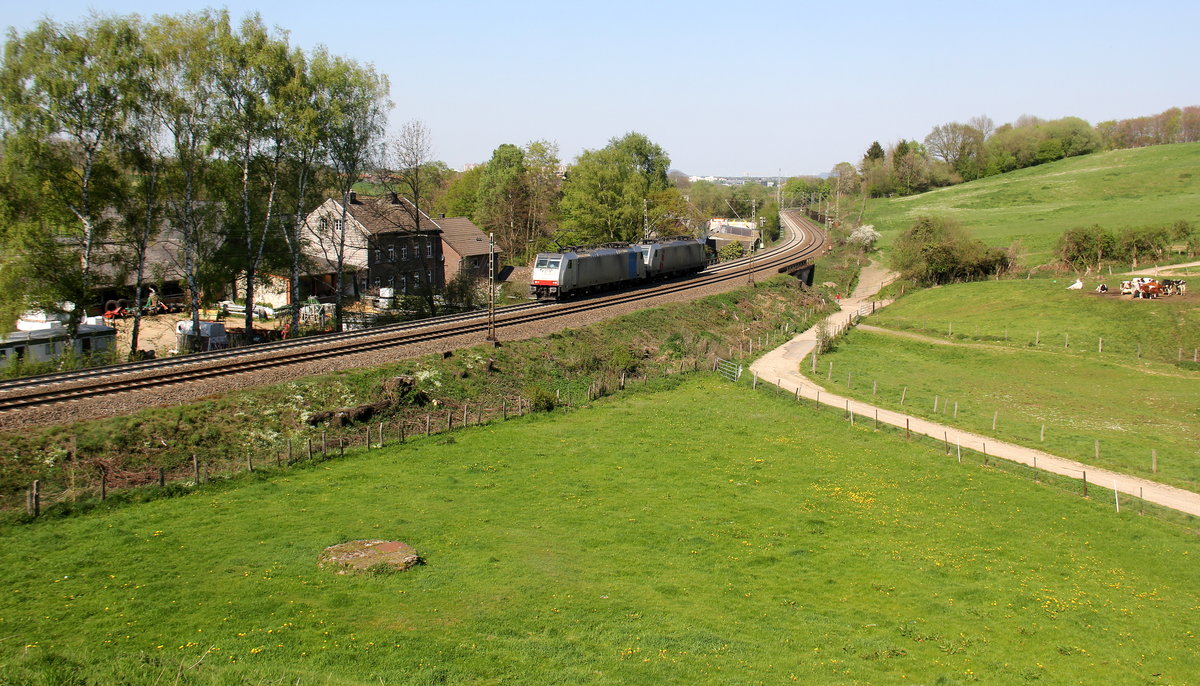 In Kaarst Broicherseite kommt die BRLL Class 66 mit einem Containerzug vor meine Linse. Es steht zu vermuten das der Zug als Umleiter gen Aachen West fährt nach Antwerpen. 24.4.2019