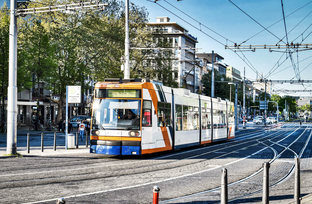 Nachschuss vom rnv-Tramwagen 4119, nahe der Haltestelle Viernheim, Tivoli (RNZ).